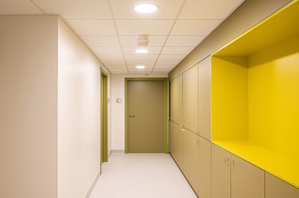 Les travaux ont également intégré une rénovation électrique de grande ampleur : nouveau système d’appel infirmier, centrale téléphonique modernisée, éclairage LED dans les couloirs, pose de nouveaux faux plafonds et ajout de prises RJ45 dans les chambres. L’ensemble visait à renforcer la sécurité, optimiser le fonctionnement quotidien et améliorer l’accessibilité numérique.